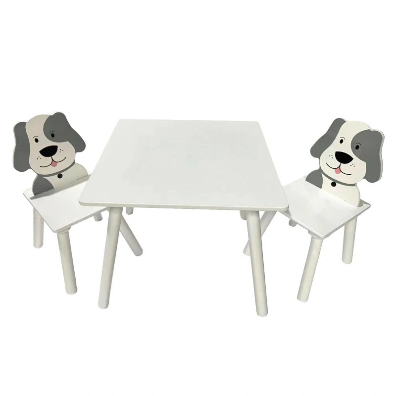 Tento set zahrnuje jeden stůl a dvě židle, jejichž opěradla zdobí roztomilé tváře pejsků. Díky tomuto hravému designu se děti budou cítit pohodlně a nadšeně při hrách, kreslení, čtení nebo jiných aktivitách. Světlé barvy a veselý vzhled snadno zapadnou do jakéhokoli interiéru.