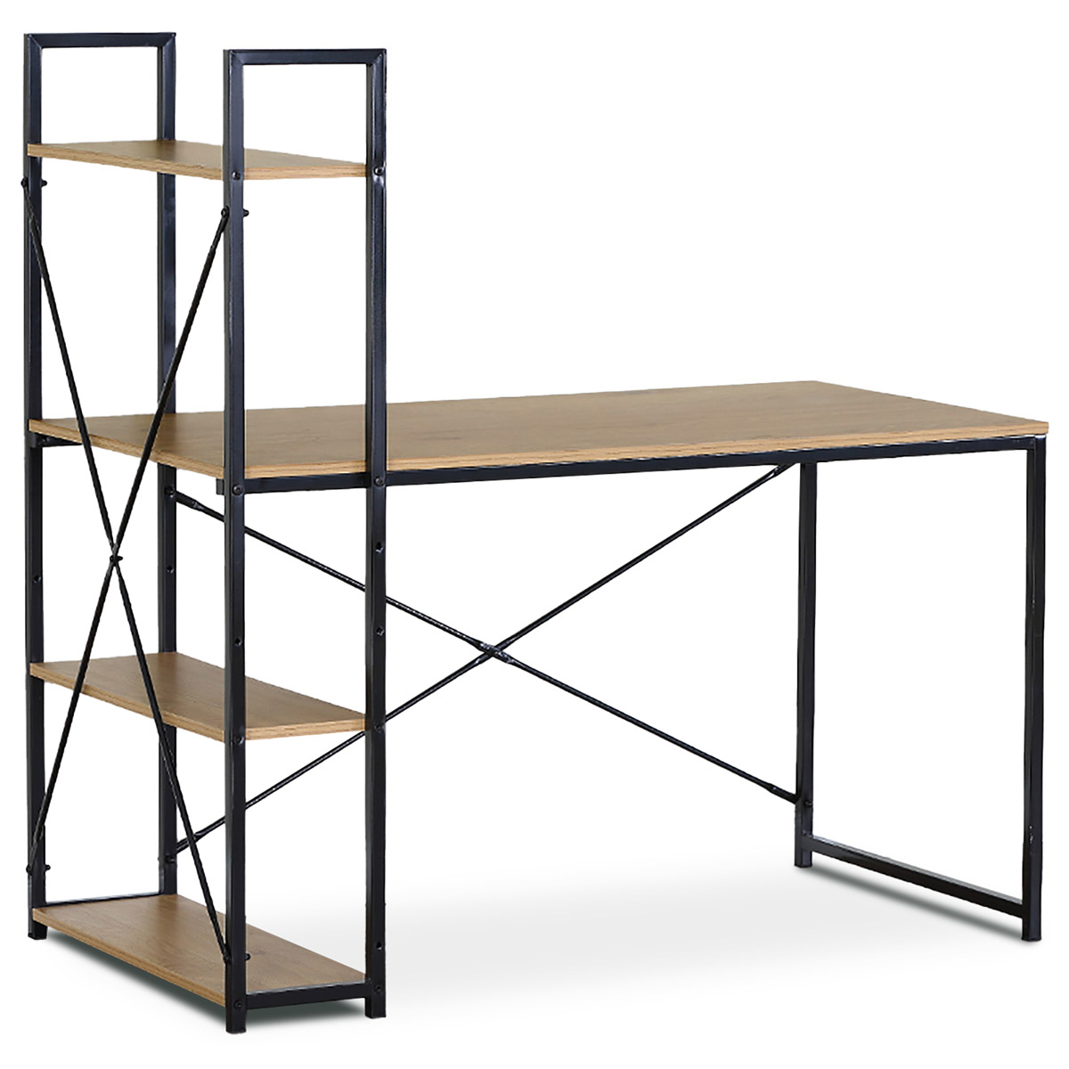Stůl psací s regálem, MDF, dekor dub, černý kov